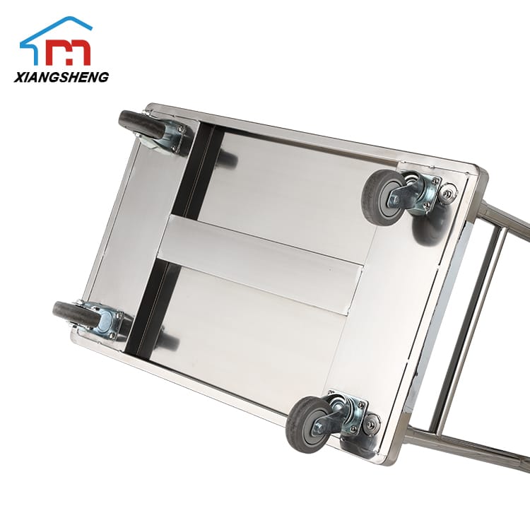 Chariot à plate-forme en acier inoxydable fourni directement par l'usine. Ce chariot est fabriqué en acier inoxydable de forte épaisseur (1,0 mm), il est capable de transporter en douceur des charges allant jusqu'à 1 000 kg. 300 kg.