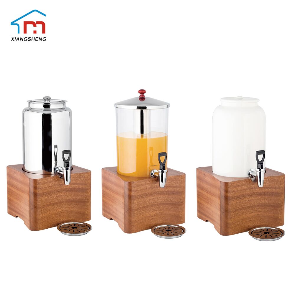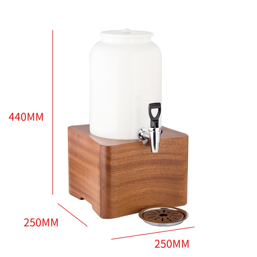 Juice dispenser with beech wood base. It can be used for serving guests and keep beverage cold. Ask us freely and we will offer you our best price.