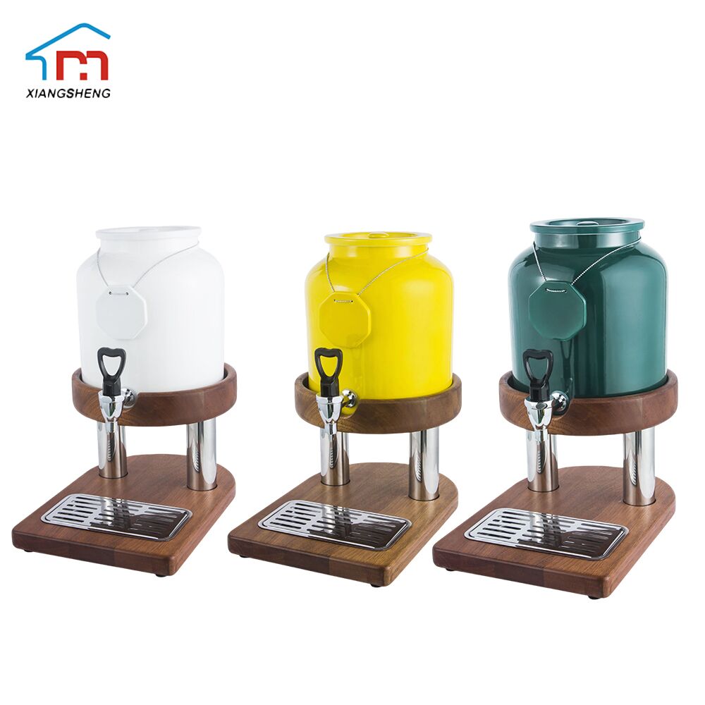 Juice dispenser with beech wood base. It can be used for serving guests and keep beverage cold. Ask us freely and we will offer you our best price.