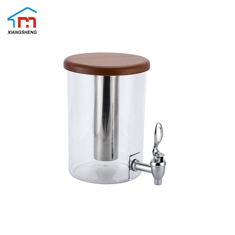 Juice dispenser with Sapele wood base. It can be used for serving guests and keep beverage cold. Ask us freely and we will offer you our best price. Features: