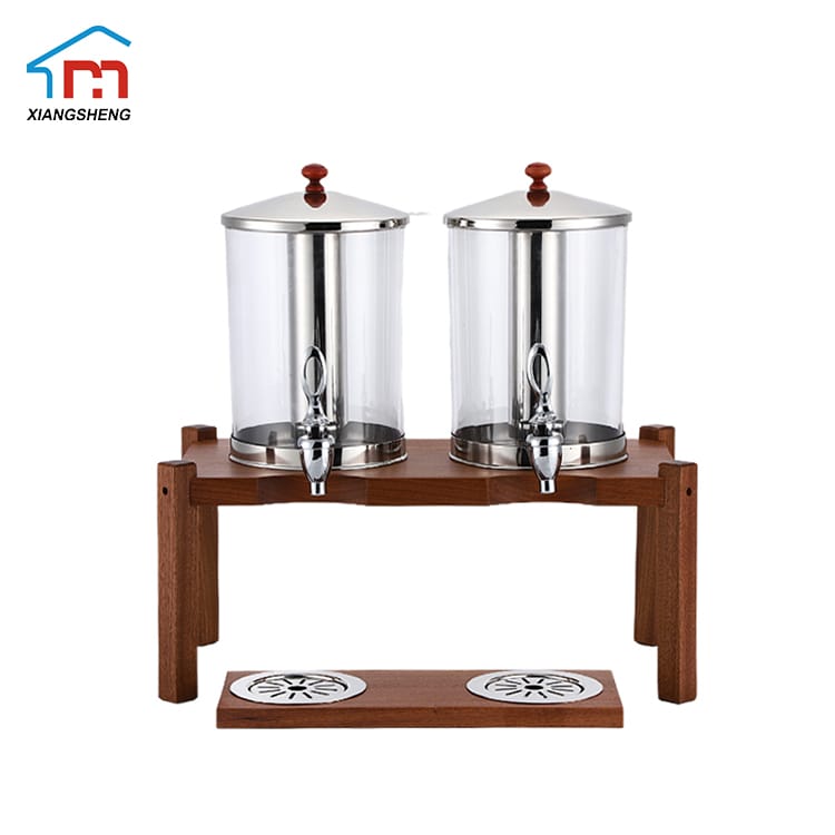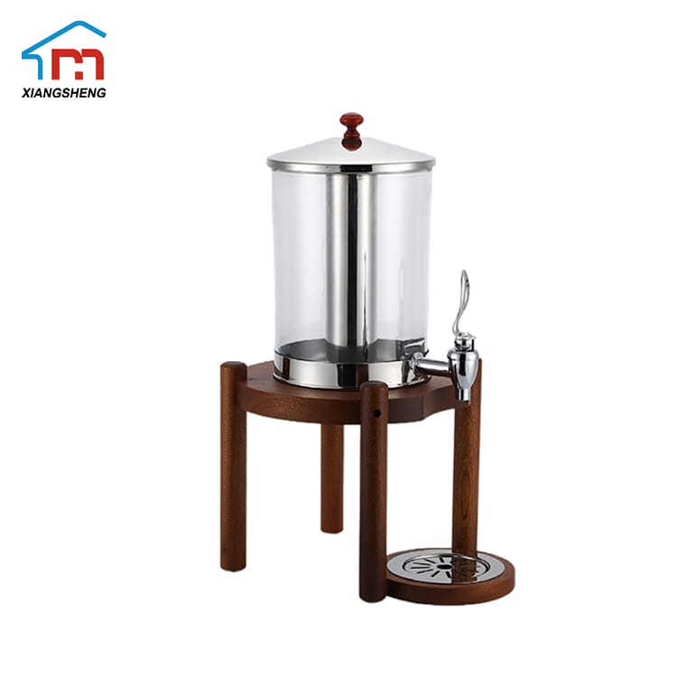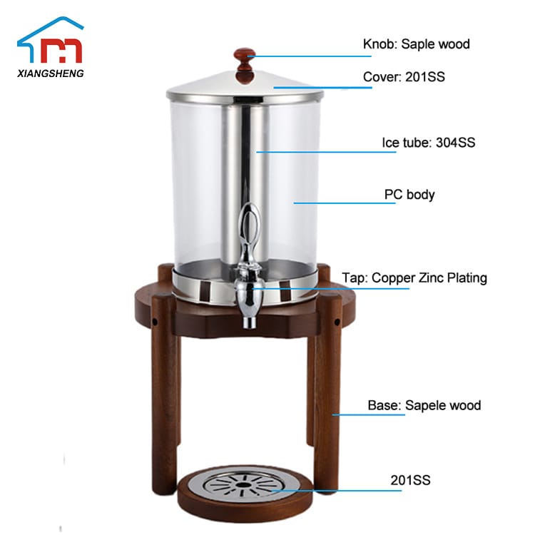 Juice dispenser with Sapele wood base. It can be used for serving guests and keep beverage cold. Ask us freely and we will offer you our best price. Features: